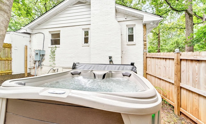 Enjoy the spa amenities of this tastefully remodeled home nestled amongst the trees on a dead-end street. Located in Chapel Hill on the edge of the Durham border. There's a 5 person hot tub, spa robes, a high-end, full body massage chair, and a 120' projector TV to enjoy in front of the remote-controlled gas fireplace. There's even a 20X60 fenced area for your furry friends to hang out.