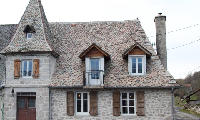 VERY Beautiful character cottage overlooking Lake St Etienne Cantales. pinnacle schist. beautiful oven. Fenced of 1000 m2. accepted animals.