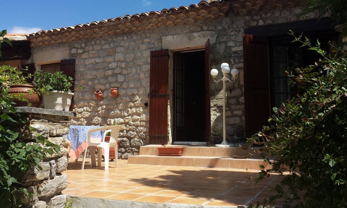 Charming stone holiday house, with a pretty garden with trees, located in the Baronnies, in a hamlet of character (open cloister), quiet, away from mass tourism and close to the river "Ouvèze".