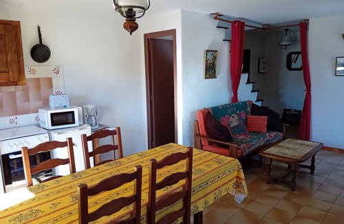 Pretty stone house of 2 levels on vaulted cellars on the edge of the medieval village of Joannas in the perimeter of the castle. Exceptional situation between the castle of Joannas and the one of Logères in the national park of the mountains of Ardèche. Living room dining kitchen, 1 bathroom with shower, 1 separate toilet and 2 bedrooms upstairs. The house is located at the top of its private land which gives it a breathtaking view of the surrounding countryside and the pond of Joannas. No car crossing the house is reached by a dead end. The garden of 1000m2 gives direct access to hiking trails that crisscross the entire region. Joannas is a small quiet village of 300 inhabitants you will find 3 boulodromes for the petanque and 1 for the Lyonnaise. A few minutes away is the river La Beaume which flows into the Ardèche a little further. Down the Beaume by the small road gorges there are many beaches at the edge of reservoirs and small waterfalls. Refreshing baths guaranteed in crystal clear water. It even exists in the town of Joannas a few minutes from the house a secret and well hidden in the nature where at the cost of a small descent between the rocks we come to a natural bowl located under a waterfall in lush greenery. Paradise to see absolutely and swim under the waterfall. The house and its garden are independent and for your exclusive use. The owners live in the neighboring house and are therefore available when needed. Many hiking opportunities such as the tour of Tanargue, visits to villages with preserved architecture, Largentière is nearby, many sports activities in the area canoe riding without forgetting the gastronomy with local and often organic products, weekly markets , cultural life, fauna and flora ... to discover for a good holiday.