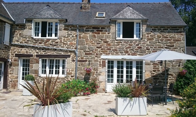 Stone cottage facing south west located at the exit of the village of Minihic sur Rance. The bakery is 400m, the Rance and the GR 34 are 750m, the beach 1400m.