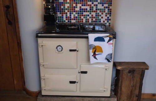 The kitchen Rayburn range warms the cottage and can be used for cooking .