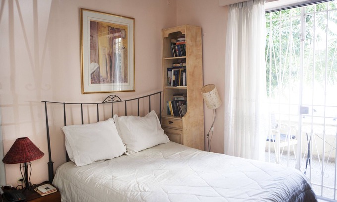 A pleasant, bright, warmly-decorated house with large windows, located in the centre of Halandri on a quiet street lined with orange trees. The house has a cozy atmosphere and is filled with antique furniture and an eclectic mix of items collected from all over the world.