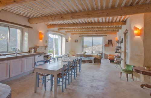 Enjoy total tranquillity in the restored 18th-century 'Mas Provençal' above Montaulieu. Thanks to the use of old techniques and natural materials, the house fits perfectly into the landscape. The heated swimming pool, petanque court and several terraces offer privacy and breathtaking views. An ideal place to relax in the Baronnies Regional Natural Park, and your pet is welcome too!