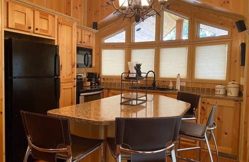 Our cabin was custom built by Amish craftsman with a unique light log exterior and Knotty pine interior that's warm and inviting. We can comfortably accommodate up to 7 guests in 1 master bedroom, sleeper sofa and trundle bed.. We also provide 400+ mbps WiFI Cloud from anywhere in our cabin. We also have 3 flat screen hi-def TV's. We have a full sized and fully furnished kitchen and appliance package that also includes a washer/dryer. We provide 2 covered parking spaces and use of our electric golf cart durning the summer months. STR permit # STR21-01568
