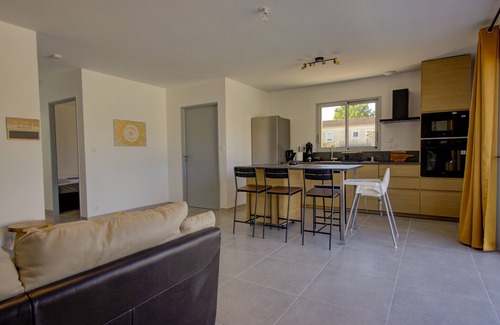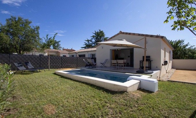 Villa Chardonnay – New villa with private pool near the Château de Suze-la-RousseIdeally located in the heart of Provence’s Drôme region, just a few steps from the historic Château de Suze-la-Rousse, Villa Chardonnay welcomes you for a peaceful and comfortable stay with family or friends. A modern, fully accessible holiday homeThis brand-new, single-story villa is wheelchair accessible and perfect for families. Just a short walk from the village, you’ll find bakeries, grocery stores, and other essential shops nearby. The fully fenced garden ensures a secure environment for children. A private outdoor space to relax and enjoyTake a dip in your private swimming pool (3.5 x 5 m), share laughs over a game of boules (pétanque), and enjoy outdoor meals on the shaded terrace. Your car will be safely parked in a private covered parking space.Comfort and convenience inside Bright and open living area with a fully equipped kitchen, dining area, and lounge that opens onto the terrace and pool.2 bedrooms, each with its own private en-suite shower room. A separate toilet. A small laundry room with washing machine. Prime location Walking distance to the Château, local shops, and restaurants. Short drive to nearby attractions: Rhône Valley vineyards, Grignan, Nyons, Vaison-la-Romaine...Book your stay at Villa Chardonnay now and enjoy an authentic Provençal experience with all the comfort of a modern home!