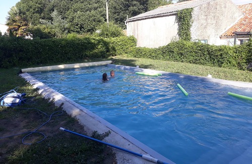 charming house charentaise renovated (antique furniture, original decor) in a hamlet in Varzay, 11 km from Saintes (32 km from Royan and beaches). Pool of 10M X 5 M on ground wire and out of sight. Heated at 28 °. Salt filtration.