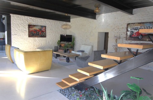 Charentaise with an industrial look is located in Colombiers. Charentaise with an industrial look provides accommodation, featuring Wellness Facilities, Fireplace/Heating, Child Friendly, among other amenities. This Villa features Wellness Facilities, Fireplace/Heating, Child Friendly, to make your stay a comfortable one.