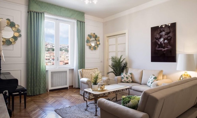 Welcome to Charity LARGE RESIDENCES NAPLES, an exquisite apartment that serves as the perfect wedding accommodation. Nestled in the heart of Naples, this elegant residence provides a stunning backdrop for your special day. With its spacious layout and breathtaking views, ranging from Castel Sant Elmo to the mesmerizing Gulf of Naples, you and your guests are sure to feel the romance and charm this location exudes.