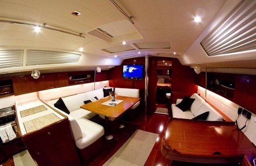 “Fate” sleeps up to four guests, we do not allow more. Forward cabin has queen birth with a full bathroom/shower with electric head. Aft cabin has a center-line queen bed with private access to its own full bathroom with shower. The main salon has a large U-shaped dinette which comfortably seats 6 and converts to a lounge for watching TV. Fully equipped galley (kitchen) has a gas oven and cook top, microwave, refrigerator, and an array of cooking utensils. A flat screen TV and DVD player are available in each room, with the main salon equipped with a 32inch LED tv with dvd and USB for watching movies on memory stick. The stereo includes an IPod connection. Linens and towels provided. Wifi is also available.