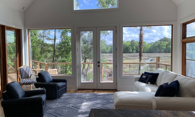 Spectacular Marsh and creekside Treehouse nestled among historic Grand Oaks. Private House. Lots of wildlife. Large deck with chairs and loungers to relax the day away or 20 short minutes to Downtown Charleston shopping, restaurants and nightlife.