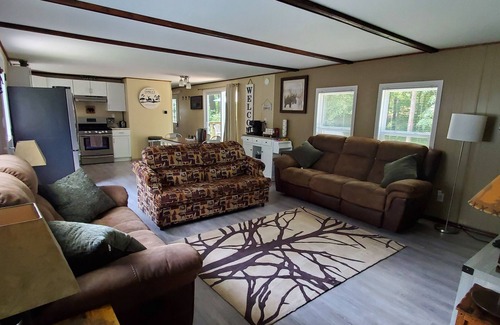 Quiet, cozy, property located far enough, but close enough to downtown Wisconsin Dells! Just four miles! Cabin theme mobile home with a huge front yard, enclosed by trees, to ensure a quiet getaway! Comfortably sleeps 6 people. We provide the comforts of home with towels, bedding/sheets, dishes, laundry essentials, coffee (keurig and traditional maker) etc. Plenty of space for outdoor activities.