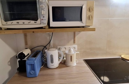 - a functional kitchen equipped with a big fridge, dishwasher, electric plate, oven, microwave, Nespresso coffee machine, toaster, boiler and all the necessary ustensils;
