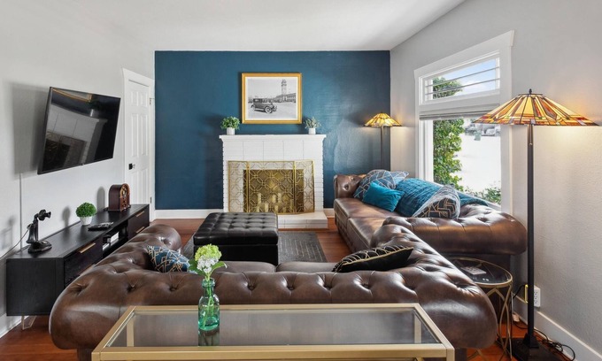Step into Roaring 20’s 2.0, a beautifully restored 1920s Craftsman home blending vintage charm with modern luxury. This 2BR/2BA retreat features Art Deco accents, a chef’s kitchen with Wolf appliances, a cozy sunroom, and a serene backyard. Enjoy high-speed WiFi, a 55” 4K Smart TV, and easy access to Downtown San Jose, BART, and major freeways. Nestled in a quiet, historic neighborhood—experience the elegance of the past with today’s comforts!