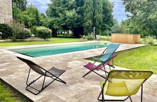 Charmant gîte avec piscine chauffée et Wi-Fi en pleine nature - FR-1-653-283 offers accommodations in Pranzac, 13 miles from Hirondelle Golf Course and 30 miles from Rochechouart - Nature Park. This property offers access to table tennis, free private parking, and free Wifi. Outdoor seating is also available at the vacation home. Offering a terrace with garden views, this vacation home also has a TV, a well-equipped kitchen with a dishwasher, a microwave, and a fridge, as well as 4 bathrooms with a bath. For added privacy, the accommodation features a private entrance. Guests can also relax in the garden. Limoges – Bellegarde Airport is 53 miles away.