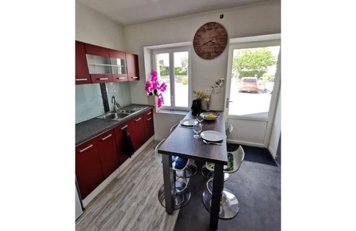 Nestled in Auchay-sur-Vendée, this 1-bedroom, 1-bathroom apartment brings it all within your reach. Fans of nature and the outdoors will love being 38 minutes by car from Bay of Biscay and 49 minutes from Concurrence Beach. Marais Poitevin Regional Nature Park is just a quick walk away or make the 10-minute drive to Chateau de Terre Neuve.