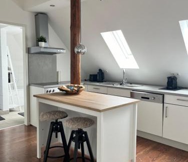 Charmante Dachgeschosswohnung in Lage is located in Lage, just 5.4 miles from Messe Bad Salzuflen and 6 miles from Train Station Detmold. This apartment features free private parking, private check-in and check-out, and free Wifi. Fair Bielefeld is 12 miles away and Stadttheater Bielefeld is 13 miles from the apartment. The apartment consists of 1 bedroom, a living room, a fully equipped kitchen with a dishwasher and a coffee machine, and 1 bathroom with a bath and a hair dryer. Towels and bed linen are offered in the apartment. The accommodation is non-smoking. A bicycle rental service is available at the apartment. Hermanns Monument is 8.4 miles from Charmante Dachgeschosswohnung in Lage, while LWL Open Air Museum Detmold is 8.7 miles from the property. Paderborn-Lippstadt Airport is 35 miles away.