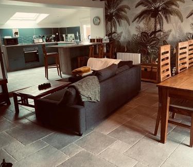 Featuring a garden, Charmante maison à deux pas de la mer features accommodations in Gouville-sur-Mer. This property offers access to a terrace, free private parking, and free Wifi. Granville Train Station is 27 miles away and Haras of Saint-Lô is 28 miles from the vacation home. This vacation home includes 2 bedrooms, a living room and a flat-screen TV, an equipped kitchen with a dining area, and 1 bathroom with a shower and a washing machine. Towels and bed linen are available in the vacation home. There's also a seating area and a fireplace. Champrepus Zoo is 28 miles from the vacation home, while Granville's Marina is 28 miles from the property. Caen–Carpiquet Airport is 66 miles away.