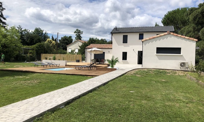 - Very bright 65m2 ground-floor apartment in house with large garden, swimming pool