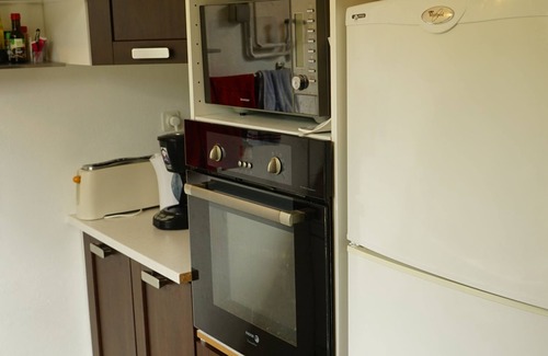 Cuisine entièrement équipée : lave-linge (linge et lave-vaisselle Siemens), four à chaleur tournante, four micro-ondes, plats, moules à gateaux. Salon confortable. Ventilateurs mis à disposition.