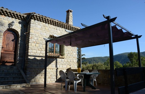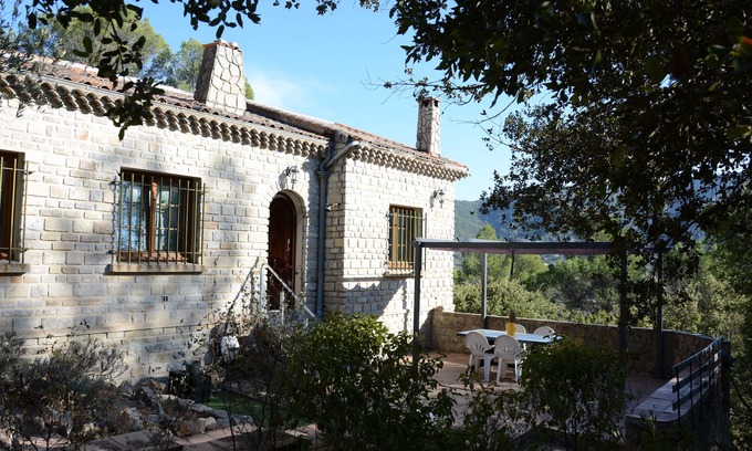 Charmante villa en pierre, dans son propre domaine privé de 16000 m², cadre très paisible. Belle vue, avec une grande terrasse donnant sur la vallée. Salon de jardin avec pergola. Piscine privée (6,5 x 3,5 x 1,5 m de profondeur), clôturée, à disposition des locataires (24/24h). Transats et parasol mis à disposition. Entretien et vérification hebdomadaire.