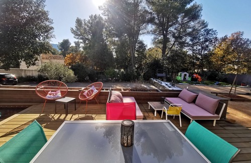 - Bungalow Provençal with Garden & Pétanque, in the heart of Pourrières" (in French)