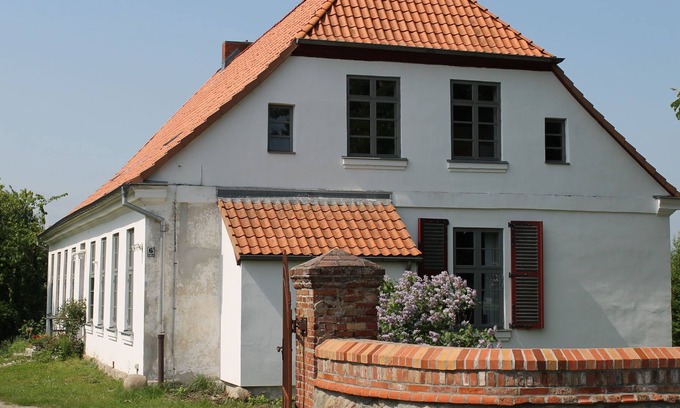 This comfortably furnished four-room vacation apartment is located in a typical house from the early 19th century in Steffenshagen. This house and the adjoining courtyard, park and orchard were originally used as a vicarage. After a long slumber and subsequent renovation, it has now been restored to its original character.
