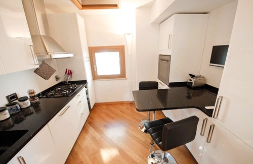 Finely restored with luxury finishings, accommodating up to 4 people each, having an extra bed option for the 5th person. In the apartment you will find indipendent air conditioning, heating system, high-speed (optical fiber) internet WiFi and wireless telephone (Italian, West European, USA and Canadian land calls included). In the bathroom of this apartment you will find a big mosaic twin cabin shower with two bright stainless steel shower heads and separated mixer commands to take a relaxing and customize bath. The heated towel rail with curved round tubes “Alcove” with a seat letting you enjoy all-round warmth (a relaxing extra for the bathroom).