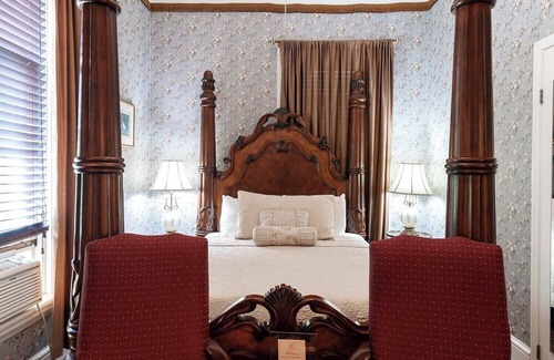 Charmeine – The Angel of Harmony — A cozy and elegant room on the 2nd floor. The 4 poster queen bed is gorgeous and romantic. The room boasts 12 ft ceilings a quaint sitting area to complete this romantic nest. This ensuite has a walk-in shower. Air conditioning, ceiling fan, Roku tv and wireless internet included. You will feel very comfortable and at home in this airy, beautiful queen ensuite. Reserve now for a great experience.