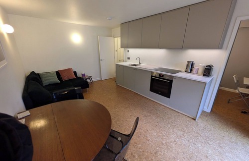 This newly refurbished one bed flat (40 sqm) has warm dimmable lighting, comfy furnishings and cork flooring throughout.
