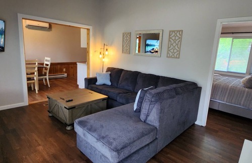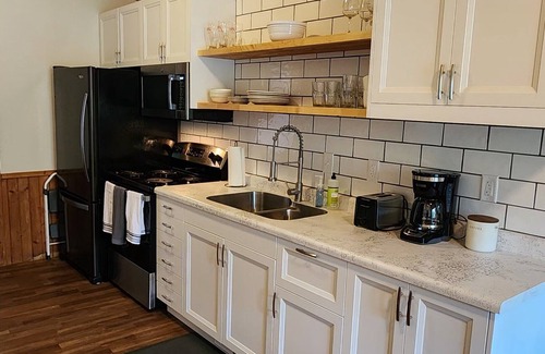 Discover this beautifully updated 1-bedroom apartment, ideally situated just one block off Main Street in New London. Perfect for a relaxing getaway, this unit comfortably sleeps four and boasts a brand-new kitchen and bathroom for a fresh, contemporary feel. Enjoy the comfort of central air and stay connected with included Wi-Fi. You'll be just minutes from all the local lakes and area attractions, making it easy to explore everything New London has to offer.