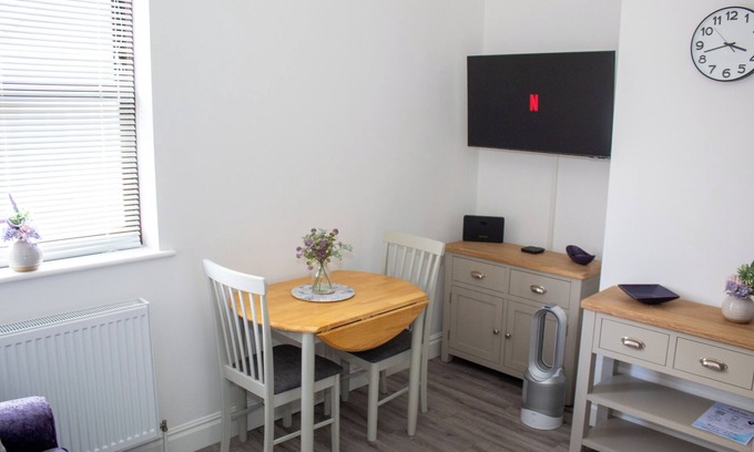 Promenade Apartment offers a stylish and comfortable retreat with all the comforts you need: high-speed Wi-Fi, Sky TV, Netflix, free off-road parking with EV chargers, central heating, and a fully equipped kitchen. Enjoy complimentary soft drinks, crisps, chocolates, and popcorn — perfect for relaxing movie nights.