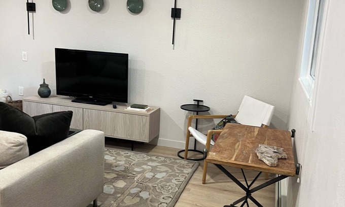 Discover the beauty of Golden from this newer 1-bedroom apartment. This charming apartment is located in the garden level of a quiet family home. It features it's own designated wifi, a fully-stocked kitchen, full-sized appliances, a large sectional sofa the size of twin mattresses, a king-sized bed, a walk-in closet and bathroom that features a double-vanity and large soaking tub. It also features private off street parking. Conveniently located at the base of a mesa, you can access miles hiking trails from the front door. It's located 5 miles from downtown Golden (which you can also access from the trails on the mesa), 20 minutes from downtown Denver, has easy access to mass transit, 6 miles to Red Rocks Amphitheater and 5 minutes to I-70 where you will be on your way to everything the mountains have to offer!