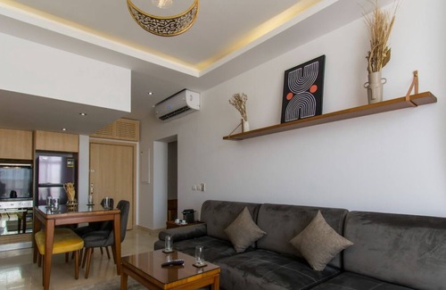 Your cozy getaway awaits in Sahl Hasheesh at this enchanting apartment. This wonderful space features 1 bedroom with a comfortable king bed, a lovely living room with a cozy sofa bed, and a modern bathroom with a refreshing shower. Enjoy the convenience of amenities like AC, WiFi, and a washing machine during your stay. Whether you're looking to relax or explore the area, this charming apartment is the perfect home base for your vacation. We look forward to welcoming you to our place.