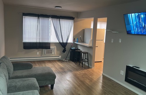 Located near the airport , enjoy what this 1-bedroom apartment has to offer. With a soothing queen bed, AC, a washing machine, heating, and WiFi, guests can relax and unwind in this excellent space. Make your holiday one for the books with a stay at our place.