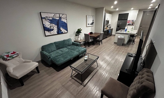 Stay at this 1 bedroom (King) apartment only a few miles from downtown McKinney. Centrally located next to Medical City McKinney at the intersection of Highway 121 and 75. 1 Bed (King), 1 Full bathroom and a fold out couch. Stair-access only (not handicap friendly).