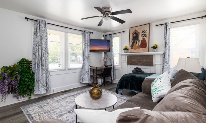 Charming 1-bedroom apartment with AC, fast WiFi, Ideal for Long Term Stays! is located in Greensboro. Charming 1-bedroom apartment with AC, fast WiFi, Ideal for Long Term Stays! provides accommodation, featuring Air Conditioner, Bedding/Linens, Fireplace/Heating, among other amenities. This Apartment features Air Conditioner, Bedding/Linens, Fireplace/Heating, to make your stay a comfortable one.
