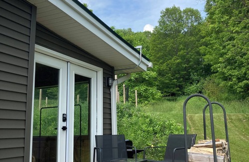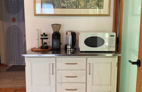 We have a fully equipped kitchen, a full bathroom with a washer and dryer, and the apartment is very bright and cheery. The bedroom has blackout curtains if you had too good of a time at one of the nearby award winning breweries. The big windows face a wildflower patch. As of mid July 2025 there will be a fire pit so bring your marshmallows!