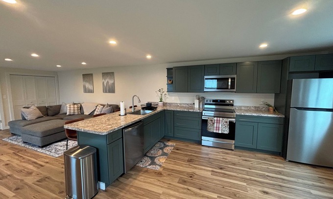 Get ready to relax in this 1-bedroom apartment in Burke. This adorable property offers AC, heating, WiFi, and a washing machine for your convenience. Enjoyable and excellent, this cozy space is perfect for guests looking to unwind and explore all the NEK has to offer. Set up with everything you will need to enjoy your time here. It has a Full Kitchen with all the utensils you would need, full bath, and a king size luxury mattress.