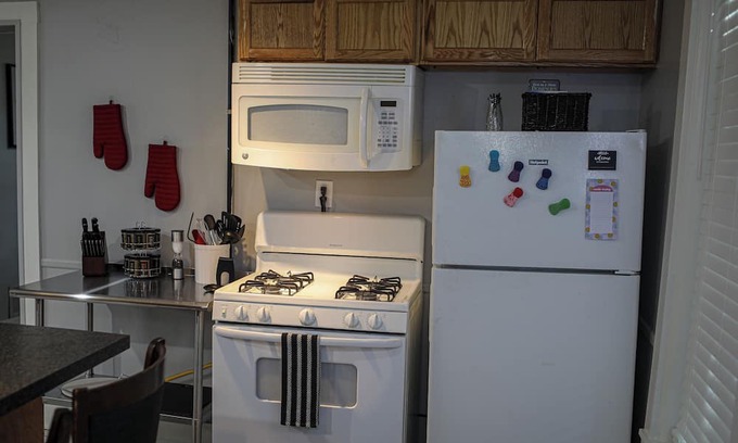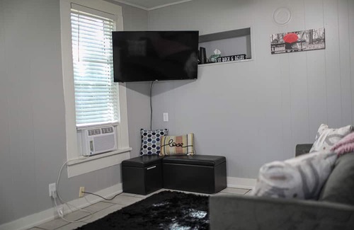 The living area is equipped with a comfortable sleeper sofa, a flat-screen TV, and high-speed Wi-Fi. You can take a short stroll to one of the many nearby restaurants and cafes. The bathroom and kitchen are fully furnished, with everything you need. This gem is located just blocks from the heart of downtown Springfield. We look forward to welcoming you!