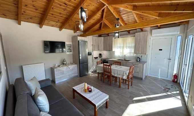 Located in Vrisi, this superb apartment is a dream. With a cozy bedroom featuring a full bed, a modern bathroom with a shower, and a lovely living room with a comfy sofa bed, guests will feel right at home. Enjoy the convenience of amenities like a hair dryer, iron, heating, washing machine, WiFi, and AC during your stay. We're happy to assist with any questions while you stay at our apartment.