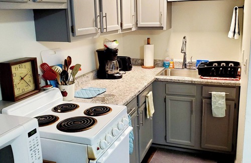 Located in Tomah, this adorable apartment is a dream. Apartment #5 has a cozy bedroom on the 2nd floor featuring a full bed, a bathroom equipped with a shower and hair dryer, and amenities like WiFi and two smart TVs plus a full kitchen with everything you may need to prepare your own at-home meals, guests will feel right at home. The peaceful atmosphere of this apartment is perfect for unwinding after a day of exploring. Kickback, relax, and enjoy everything Tomah and our apartment has to offer. Digital lock provides easy and secure access. Laundry facilities on-site in the basement for your convenience.