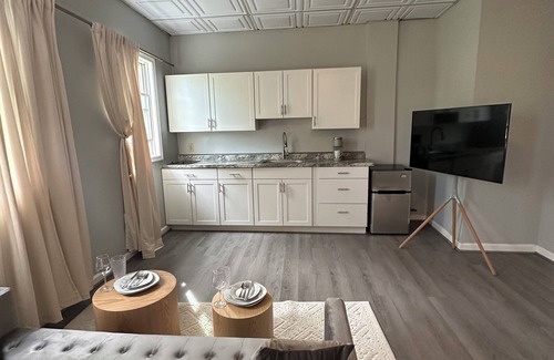 Your Scranton adventure begins at this 1bedroom bed & breakfast. Nestled in a tranquil setting, this adorable property features 1queen beds, AC, heating, WiFi, and a washing machine. With a cozy atmosphere and superb amenities, guests can relax and unwind during their stay. We look forward to hosting you at our place. cozy studio suite offers a cozy escape with modern comforts. Featuring a private entrance at the rear of the building,enjoy your stay at this private glamour cozy modern suite studio. Pets are welcome max of 2