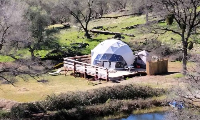 We have a private off-grid, 20-ft dome that's furnished with two couches, dining table, refrigerator (if booking for more than one day), and futon. Also, there is a porta-potty on-site. Hiking on the 150 acres is available, and we are also situated next to an 1100-acre park.