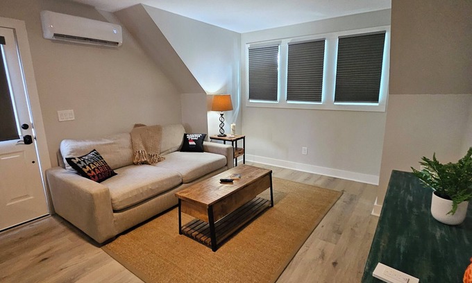 Escape to this terrific carriage house in picturesque Marietta. This cozy retreat features 1 bedroom with a queen bed, a lovely living room with an oversized R&H sofa, and a bathroom with a shower. Guests can enjoy amenities like WiFi, a washer/dryer, full kitchen, and AC. The tranquil ambiance of this gorgeous space is perfect for unwinding after a day of exploring. We hope you enjoy what our place and Marietta has to offer.