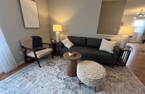 Your charming condo in Bourbonnais offers a cozy retreat with 1 large bedroom featuring a queen bed. The additional office space with a sofa provides extra comfort for guests. Enjoy the amazing amenities like WiFi, In Unit Laundry, well appointed Kitchen, Pool access and a super convenient location, all in a quiet neighborhood. Our place will help you feel at home while you're traveling in Bourbonnais.