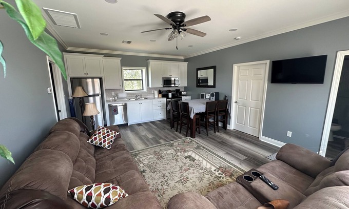 Escape to this superb new construction cottage in the picturesque Ridge/Judice community. This cozy retreat offers a large bedroom and spacious living area with all the essentials for a comfortable stay. With amenities like a hair dryer, washing machine, and AC, guests can relax and unwind in style. Enjoy your time in Ridge/Judice at our charming cottage. Centrally located for easy access to all of the South Louisiana’s festivals. Country living that is only 10 minutes from the heart of Lafayette.