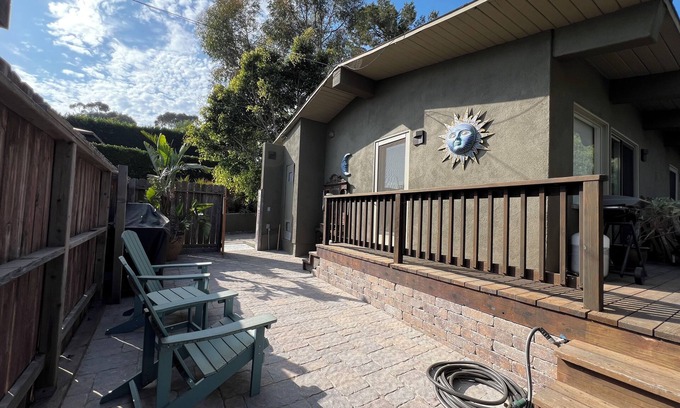 Stay comfortably in Malibu at this private adorable 1-bedroom cottage located on a 4 acre horse property. The cozy bedroom features a queen bed, perfect for a good night's sleep. You'll find a charming den with a sofa bed for extra guests. The bathroom is equipped with a bidet shower and bathtub for a relaxing soak. A large private deck over looks a beautiful open view with a glimpse of the ocean in the distance. A short walk across the road to miles of public beach. Hiking trails are within a half mile to the tallest waterfall in the Santa Monica Mountains. A world class restaurant is located just across the PCH. Restaurants and shopping are just two miles from the cottage. Enjoy amenities like WiFi, a hair dryer, and a washing machine during your stay. Fall in love with Malibu and enjoy the magic it has to offer.