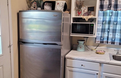 Rustic Ridge is nestled in Blue Ridge, this delightful cottage offers guests a tranquil escape. With 1 cozy bedroom featuring a full bed, 1 full sized fold out couch, and 1 bathrooms equipped with a hair dryer and bathtub and hand held shower. The bathtub is accessible friendly as it is a walk in style. This charming retreat is perfect for a relaxing getaway. Enjoy the AC, WiFi, and heating, and hrose boarding along with amenities provided for your comfort. Book now and enjoy everything this cottage has to offer. Coffee, creamer, water, and snacks provided, pet friendly with a $30 per pet fee per booking.