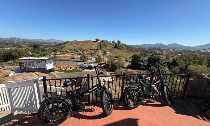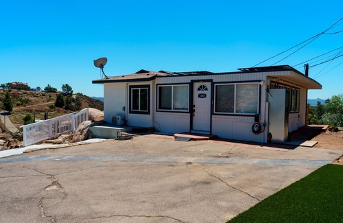 Experience Ramona like a local in this charming 1-bedroom cottage. The cozy bedroom features a comfortable king bed, perfect for a good night's sleep. With 2 bathrooms equipped with showers, guests can freshen up before exploring the area. The living room offers an additional space with a full bed for extra comfort. Enjoy amenities like WiFi, AC, and a washing machine during your stay. We'll be available to answer any questions while you stay at our place. We also gave E-Bikes you can use at your own risk. The house is up the driveway and the bikes only go up halfway so you will need to bring them back up on foot.